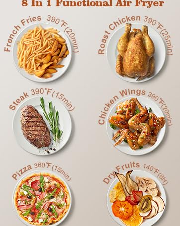 【User-friendly Digital Panel】: Take full command with the smart & intuitived digital touch. Choose from 8 one-touch presets (Fries, Steak, Chicken, Fish, Cake, etc.) or manually customize time (1-60 mins) and temperature (160°F-400°F) in 1-min/5°F increments for ultimate precision, making operation simple for you